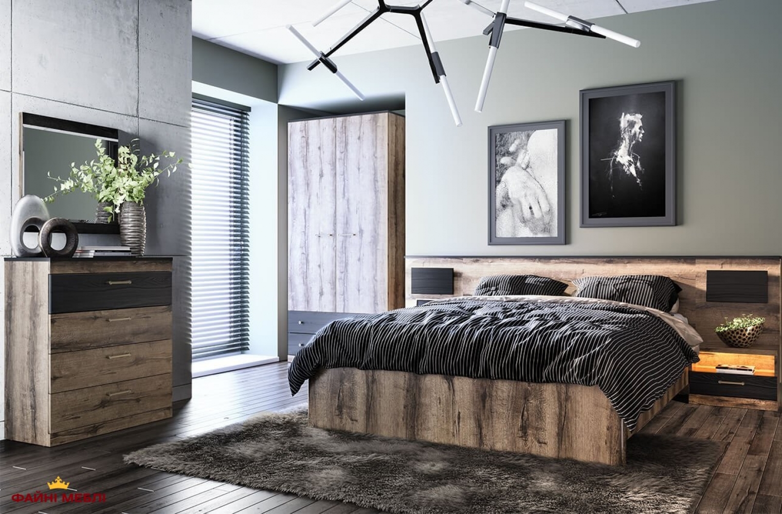 Модульна спальня Джаггер — сучасний контраст дуба й чорного для інтер’єру з характером.