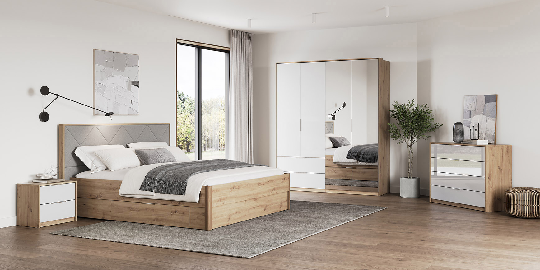Колекція складається з п’яти продуманих модулів, які легко комбінуються, дозволяючи створити спальню під розмір кімнати та індивідуальні потреби. - Сучасний стиль і естетика