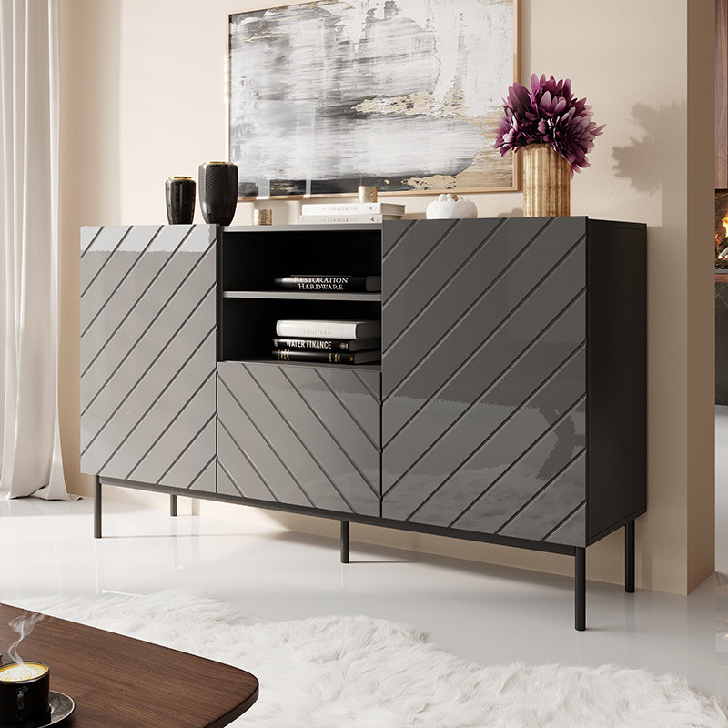 Широкий вибір модулів дозволяє створювати індивідуальні композиції: від компактних рішень до масштабних систем зберігання.Завдяки різноманіттю модулів колекцію можна адаптувати до будь-якого розміру кімнати та стилю інтер’єру. - Стриманий сучасний стиль. Колір графіт, прямі форми створюють естетику мінімалізму з характером.