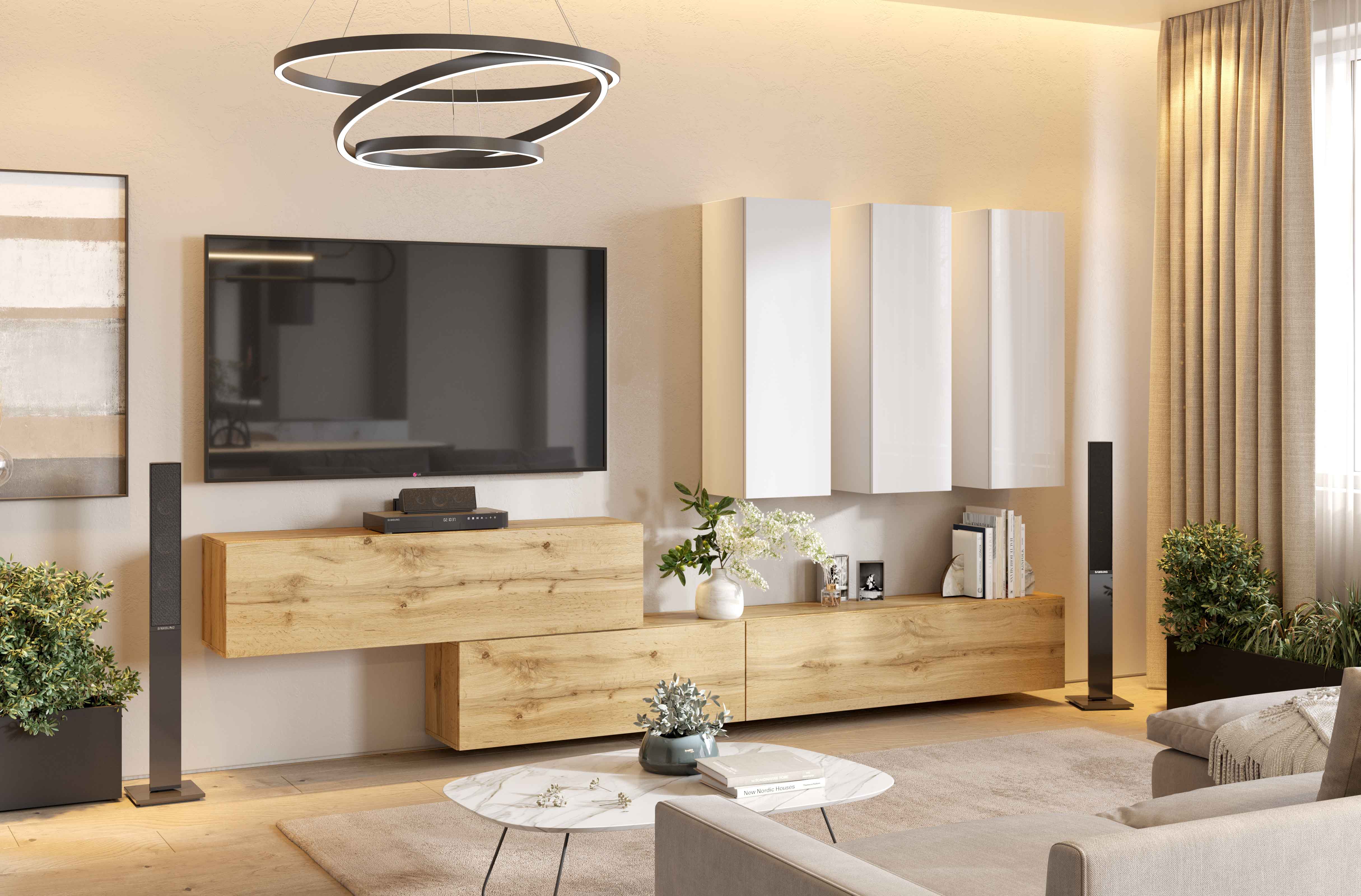 - Зручність розміщення. Система легко впишеться в різні типи інтер’єрів — від сучасного до скандинавського — завдяки простоті форм та дерев’яним текстурам.