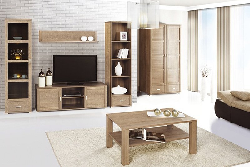 Система Діна виробляється з високоякісного ЛДСП , що забезпечує стабільність форми, стійкість до зносу й привабливий вигляд. Металеві ручки додають стилю і міцності. Модулі комплекту можуть включати вітрини, тумбу, шафу, пенал, комоди, поличка — ви самі обираєте конфігурацію вашого простору.