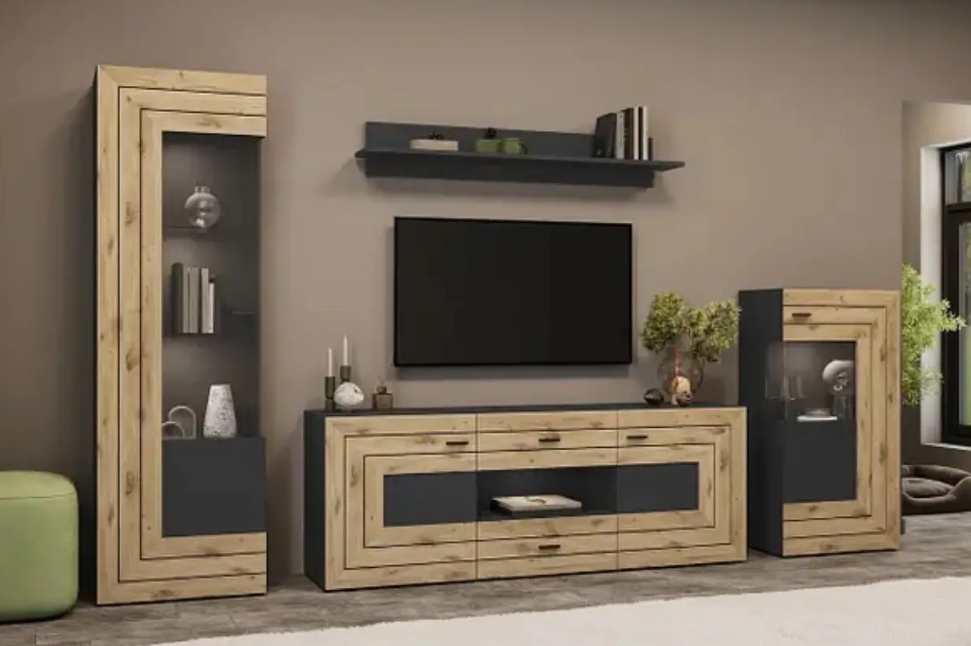 Широкий вибір модулів дозволяє створювати індивідуальні композиції: від компактних рішень до масштабних систем зберігання.Завдяки різноманіттю модулів колекцію можна адаптувати до будь-якого розміру кімнати та стилю інтер’єру. - Стриманий сучасний стиль. Колір дуб вікінг з текстурою антрацит, прямі форми створюють естетику мінімалізму з характером.