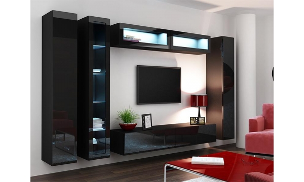 Система Vigo виробляється з високоякісного МДФ, що забезпечує стабільність форми, стійкість до зносу й привабливий вигляд. Модулі комплекту можуть включати тумбу під телевізор, шафи, вітрини, полка, журнальний стіл, комоди — ви самі обираєте конфігурацію вашого простору.