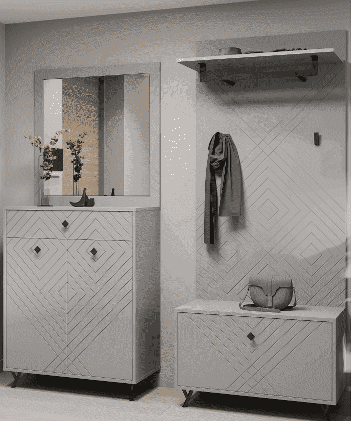 Модульний передпокій Сокме Камео Шиншила сіра / Агат софттач - м’яка естетика і комфорт щодня