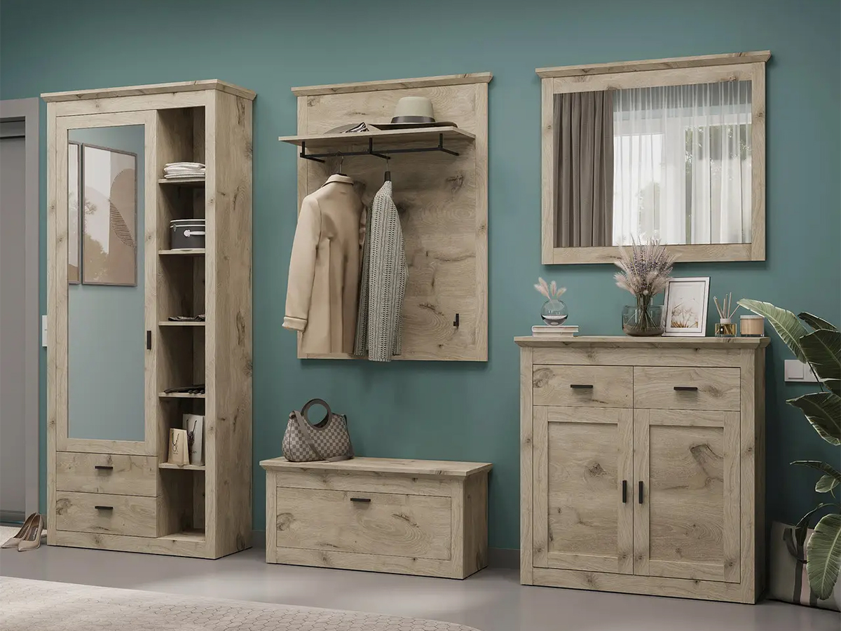 Кожен елемент колекції продуманий для практичного використання: зручне зберігання одягу, взуття та аксесуарів допомагає підтримувати порядок у передпокої без зайвих зусиль. -