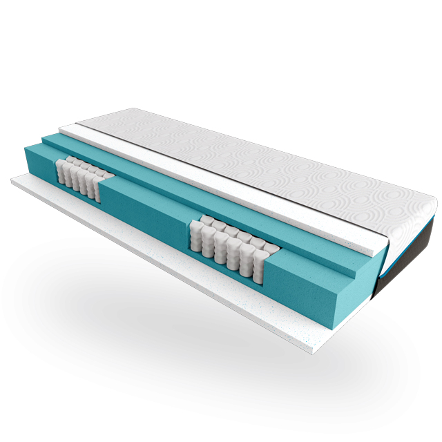 Ядро матраца розділене на п'ять зон, кожна з яких має різний рівень жорсткості. Це дозволяє матрацу адаптуватися до анатомічних особливостей тіла, забезпечуючи підтримку в ключових областях, таких як голова, шия, плечі, поперек і ноги.В ядрі використовуються різні матеріали, такі як незалежні пружини, латекс, кокосова койра або піна, що забезпечує оптимальне поєднання жорсткості та м'якості. Це дозволяє досягти ідеального балансу між комфортом і підтримкою.Використання пружинних вставок в конструкції забезпечує додаткову підтримку та еластичність. Незалежні пружини реагують на тиск і вагу тіла, що дозволяє матрацу адаптуватися до його контурів, зменшуючи точки тиску.