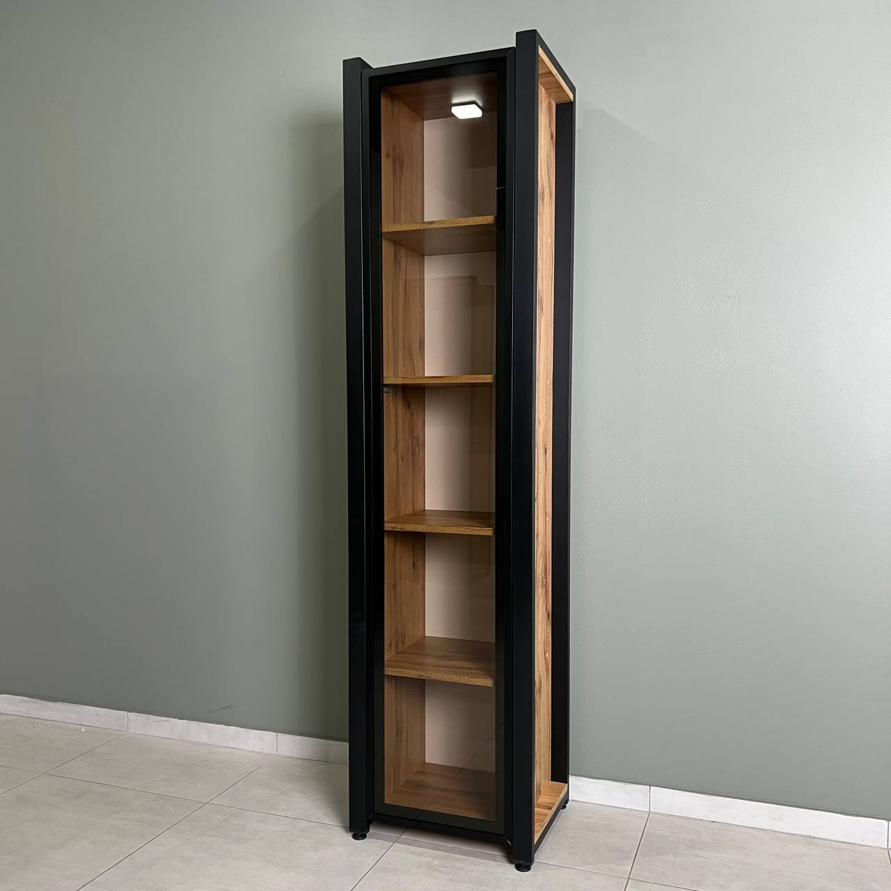 Пенал LOFT вітрина Дуб Сонома / Чорний мат MebliRoMax