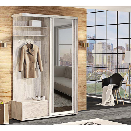 Функціональність. Шафа з дзеркалом, вішак, полиці та тумба для взуття забезпечують зручне та продумане зберігання одягу, взуття та аксесуарів.