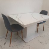 Стіл виготовлений українською фабрикою «Джем» — виробником сучасних меблів для дому. Підприємство спеціалізується на створенні практичних, стильних та довговічних моделей для кухні, їдальні й вітальні.