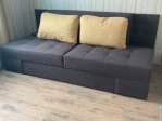 - Легкая трансформация – разложить диван можно буквально одним движением. Выдвигаешь сиденье вперед, опускаешь спинку – и удобное спальное место готово!