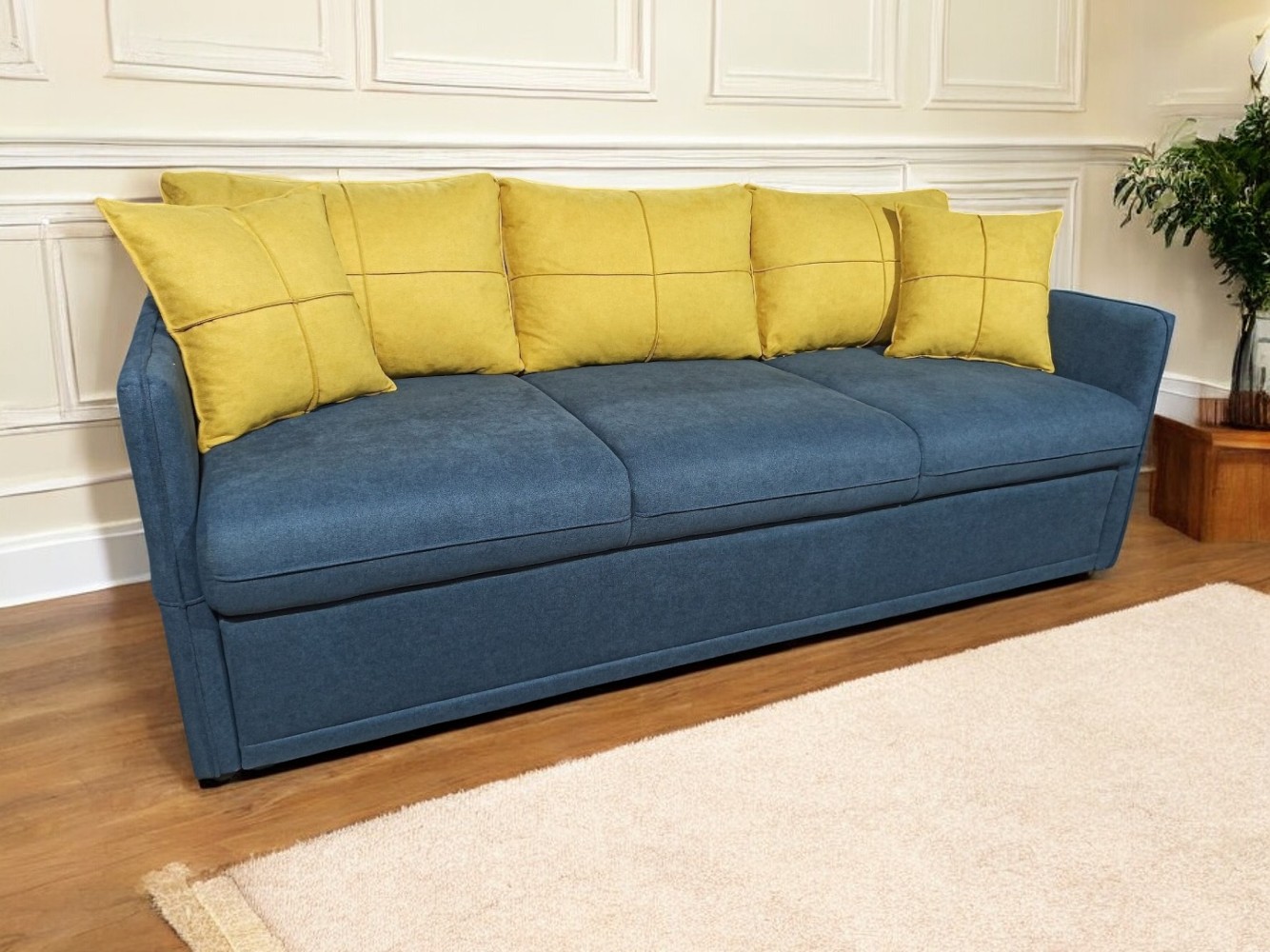 - Надежность и долговечность. Благодаря простой конструкции без сложных механизмов диван устойчив к износу и прослужит долгие годы.