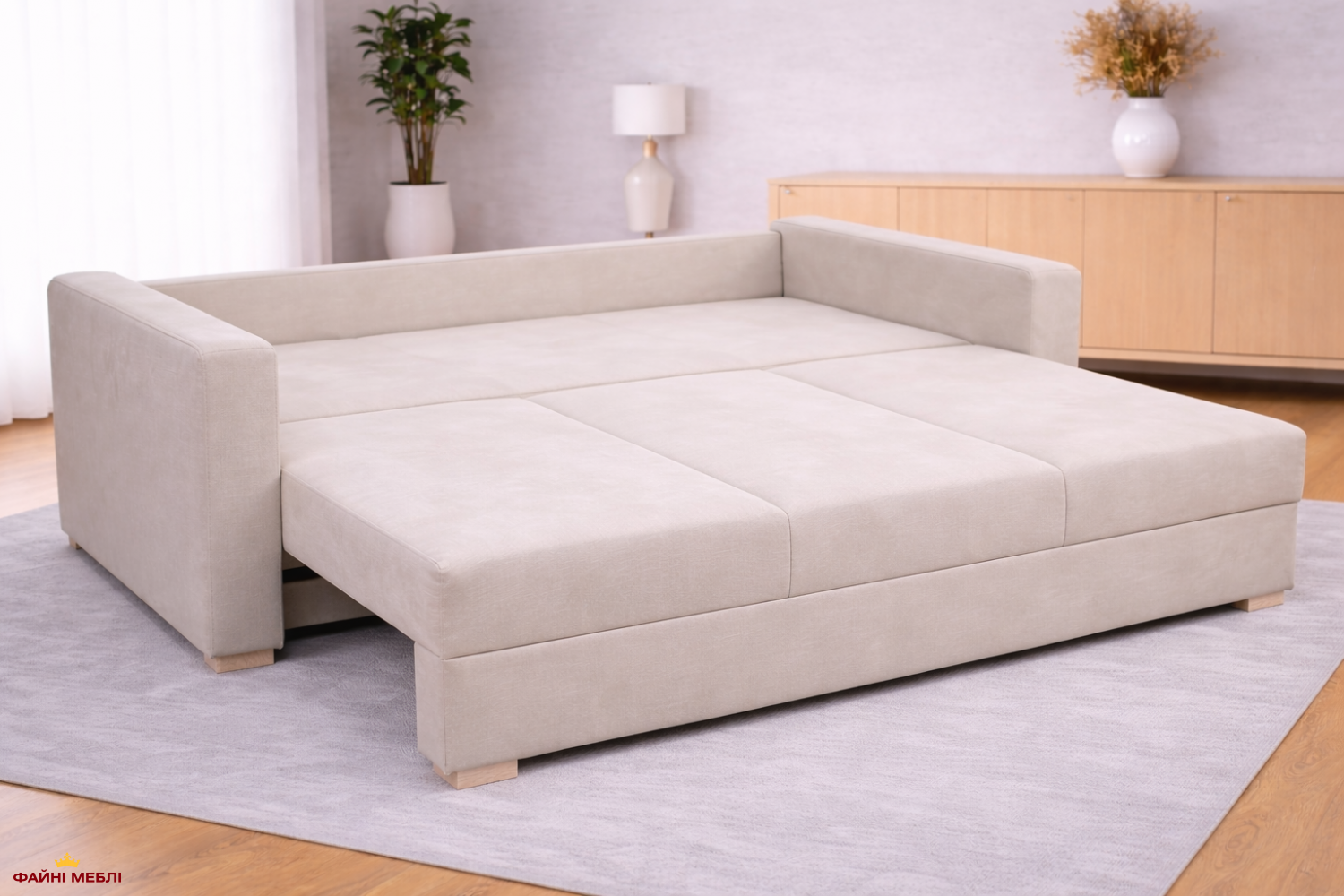 Этот механизм позволяет быстро и без лишних усилий трансформировать диван в комфортное спальное место. Для раскладывания необходимо выдвинуть сиденье вперед, после чего спинка плавно опускается на образовавшееся пространство. Благодаря такой конструкции процесс трансформации происходит легко и бесшумно, а поверхность для сна остается ровной и удобной.