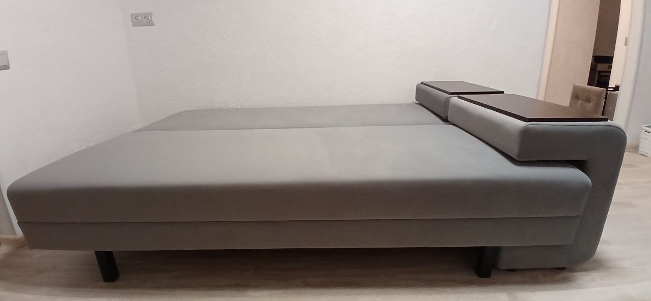 - Ровная и комфортная поверхность. В разложенном виде диван образует просторное спальное место без стыков, что обеспечивает комфортный и здоровый сон.