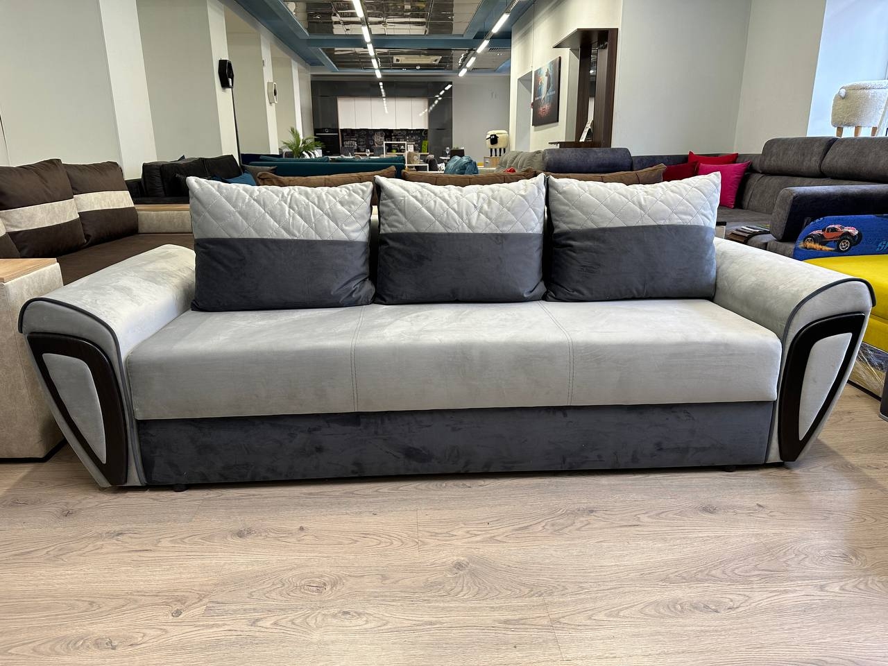 Диван Венито — это сочетание современного дизайна, комфорта и практичности. Его плавные линии, мягкие подушки и приятные на ощупь материалы создают атмосферу уюта, делая отдых еще более приятным. Благодаря стильному оформлению он прекрасно дополнит любой интерьер — от классики до модерна. Кроме эстетики, Веніто впечатляет своей функциональностью. Благодаря надежному механизму трансформации он легко превращается в удобное спальное место с ровной поверхностью. Дополнительным преимуществом является просторная ниша для хранения, которая поможет поддерживать порядок в доме. Это идеальный выбор для тех, кто ценит стиль, комфорт и практичность в одном решении.
