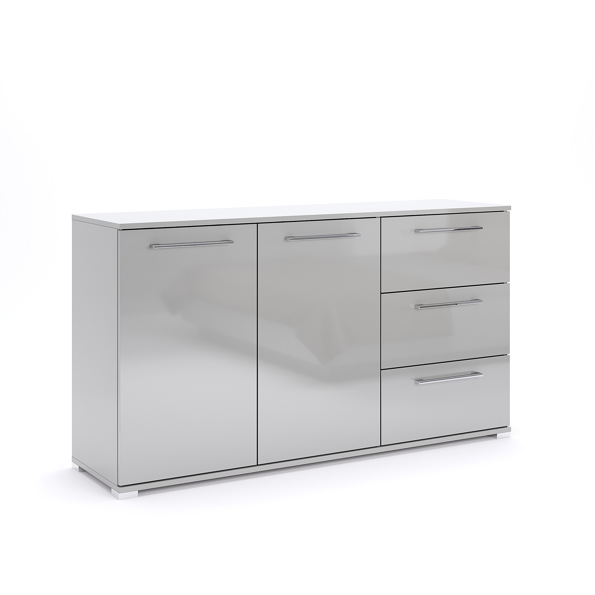 Корпус, фасады и крышка выполнены из качественной ДСП в цвете Глянец шиншилла серая — спокойный нейтральный оттенок гармонично интегрируется в интерьеры со светлой или сдержанной палитрой. Фасады и крышка имеют многослойное высокоглянцевое покрытие, высушенное под ультрафиолетовыми лучами, что обеспечивает глубокий блеск и устойчивость к ежедневной эксплуатации. Торцы защищены кромкой ПВХ и АБС, что сохраняет аккуратность линий и повышает долговечность конструкции. Ящики оснащены трёхсоставными шариковыми телескопическими направляющими полного выдвижения повышенной прочности, которые гарантируют плавный ход и полный доступ к содержимому. Дверцы комплектуются петлями скрытого монтажа, а хромированные металлические ручки и ножки создают целостный современный акцент. Комплектуется инструкцией и полным набором фурнитуры для монтажа.