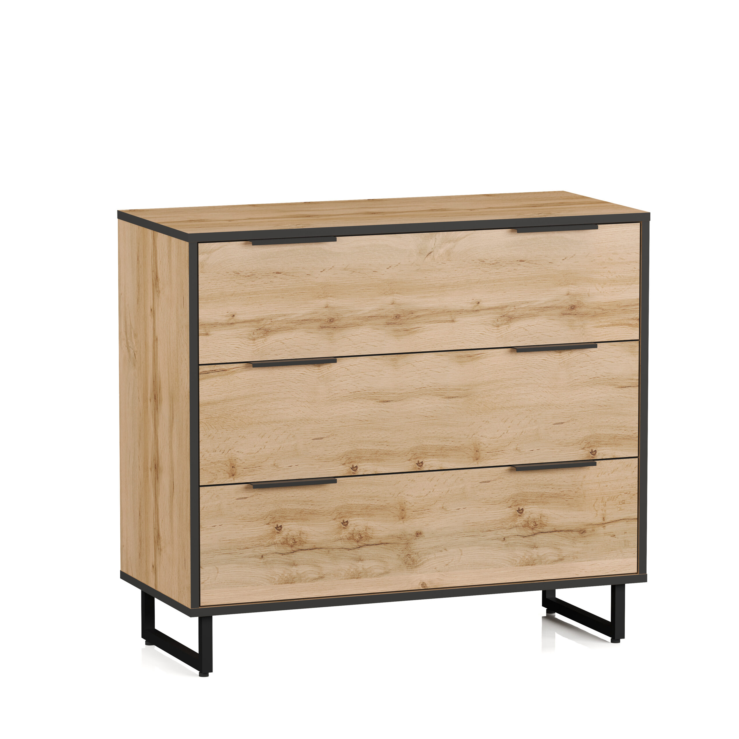 Комод изготовлен из ДСП с ламинированным покрытием для корпуса и фасадов, что обеспечивает стабильность конструкции, устойчивость к механическим повреждениям и сохранение аккуратного внешнего вида на протяжении длительного времени. Оттенок Дуб аппалачи воспроизводит природную текстуру древесины с характерными прожилками, придавая интерьеру живую глубину и выразительность. Ящики оснащены телескопическими направляющими полного выдвижения, которые гарантируют плавное, ровное и тихое движение даже при максимальной нагрузке. Ножки из металла отличаются высокой прочностью, долговечностью и устойчивостью к влаге благодаря защитному покрытию, а их открытая форма подчеркивает лофт-эстетику модели. Пластиковые ручки удобны в использовании и гармонично дополняют сдержанный дизайн. Комплектуется инструкцией и полным набором фурнитуры для монтажа.