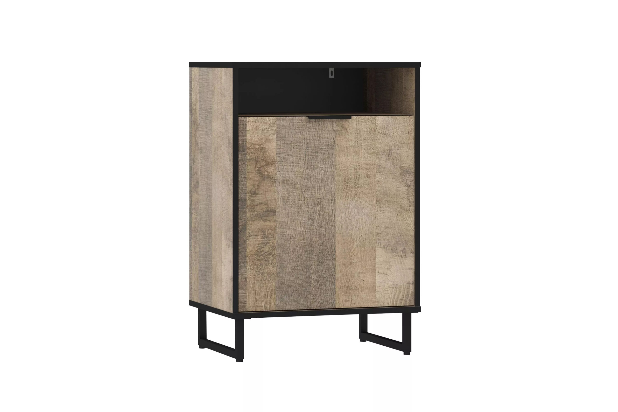 Комод изготовлен из ДСП с ламинированным покрытием для корпуса и фасада, что обеспечивает устойчивость к механическим повреждениям, сохранение геометрии и аккуратный внешний вид в процессе эксплуатации. Оттенок Дуб гранж песочный подчёркивает текстурность поверхности и добавляет интерьеру тепла без перегруженности деталями. Каркас выполнен в одном цвете с чёрными ножками из металла, что формирует цельную композицию и усиливает индустриальный характер модели. Металлические ножки отличаются высокой прочностью, долговечностью и устойчивостью к влаге, обеспечивая стабильность конструкции даже при ежедневной эксплуатации. Дверца оснащена петлями с доводчиками, которые гарантируют мягкое и бесшумное закрывание. Пластиковые ручки практичны и удобны в использовании, гармонично дополняя лаконичный дизайн. Комплектуется инструкцией и полным набором фурнитуры для монтажа.