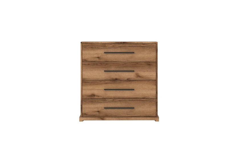Комод изготовлен из ламинированной ДСП, которая отличается прочностью, устойчивостью к износу и простотой в уходе. Варианты исполнения в цветах Дуб делано темный или сосна каньон позволяют подобрать модель под разные стили интерьера — от контрастных до более светлых и спокойных решений. Конструкция предусматривает четыре вместительных ящика, которые позволяют удобно организовать хранение одежды, текстиля или других вещей. Ящики оснащены роликовыми направляющими, что обеспечивает плавный ход и полный доступ к содержимому. Черные пластиковые ручки имеют удлиненную форму, удобны в использовании и подчеркивают современный характер модели. Комплектуется инструкцией и полным набором фурнитуры для монтажа.