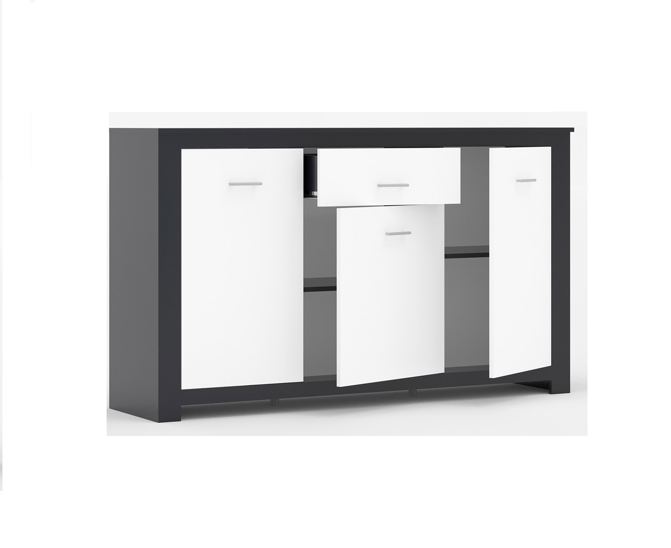 Основой конструкции комода Лилия служит корпус из ламинированной ДСП — прочного и износостойкого материала, который отлично подходит для ежедневного использования. Фасадная часть выполнена из МДФ, что придает комоду более элегантный внешний вид и обеспечивает долговечность. Благодаря качественному покрытию фасады имеют приятную текстуру и современный стиль, особенно в трендовом сочетании цветов антрацит / латте софт. В комплектации комода предусмотрен один вместительный ящик на телескопических направляющих полного выдвижения, которые обеспечивают плавный ход и удобный доступ ко всему содержимому. Это решение делает использование комода максимально комфортным даже при ежедневной нагрузке. Три дверные секции с просторными полками обеспечивают удобное и организованное хранение вещей. Дверцы оснащены стандартными фирменными металлическими петлями, которые гарантируют надежность и стабильность конструкции. Для открывания используются стильные металлические ручки-релинги, подчеркивающие современный характер модели и обеспечивающие удобство в использовании. Комод установлен на корпусной опоре (цоколе), что придает изделию устойчивость и делает его визуально цельным. Такая конструкция идеально подходит для интерьеров в современном стиле, где ценится лаконичность и практичность.