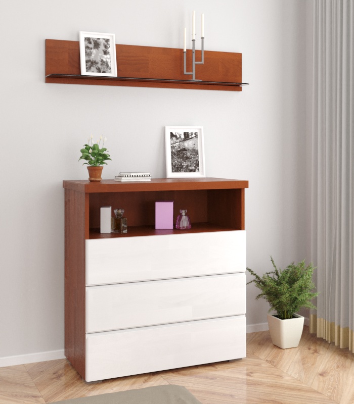 Комод изготовлен из высококачественной ламинированной ДСП, что обеспечивает прочность, устойчивость к царапинам и лёгкость ухода. Фасады имеют стойкое покрытие, которое сохраняет свой вид на протяжении многих лет. Металичиские ручки придают модели современный шарм, а ножки усиливают конструкцию. Ящики оснащены телескопическими направляющими с доводчиком — они выдвигаются плавно, тихо и удобно.