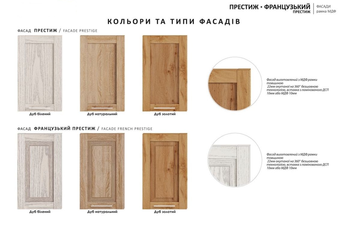 - Фасады выполнены из МДФ, покрытого качественной ПВХ-пленкой.