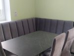 - Рациональное использование пространства. Благодаря угловой форме модель идеально подходит для небольших кухонь или столовых, позволяя максимально эффективно использовать каждый метр помещения.