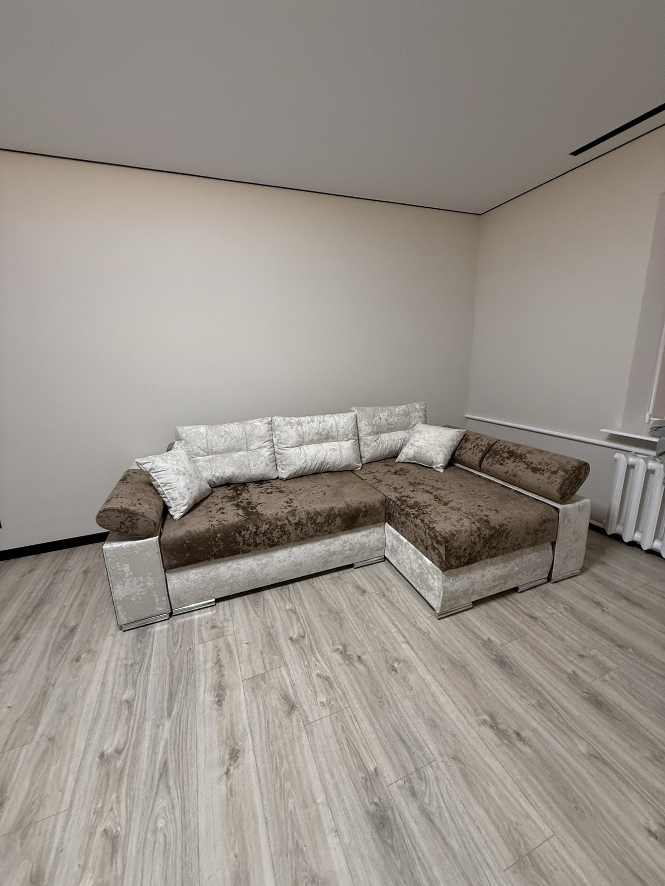 - Плюсы прямого дивана: нет стыка на спальном месте, занимает меньше места в комнате и лучше подходит для малых и средних комнат, а также приятная цена.