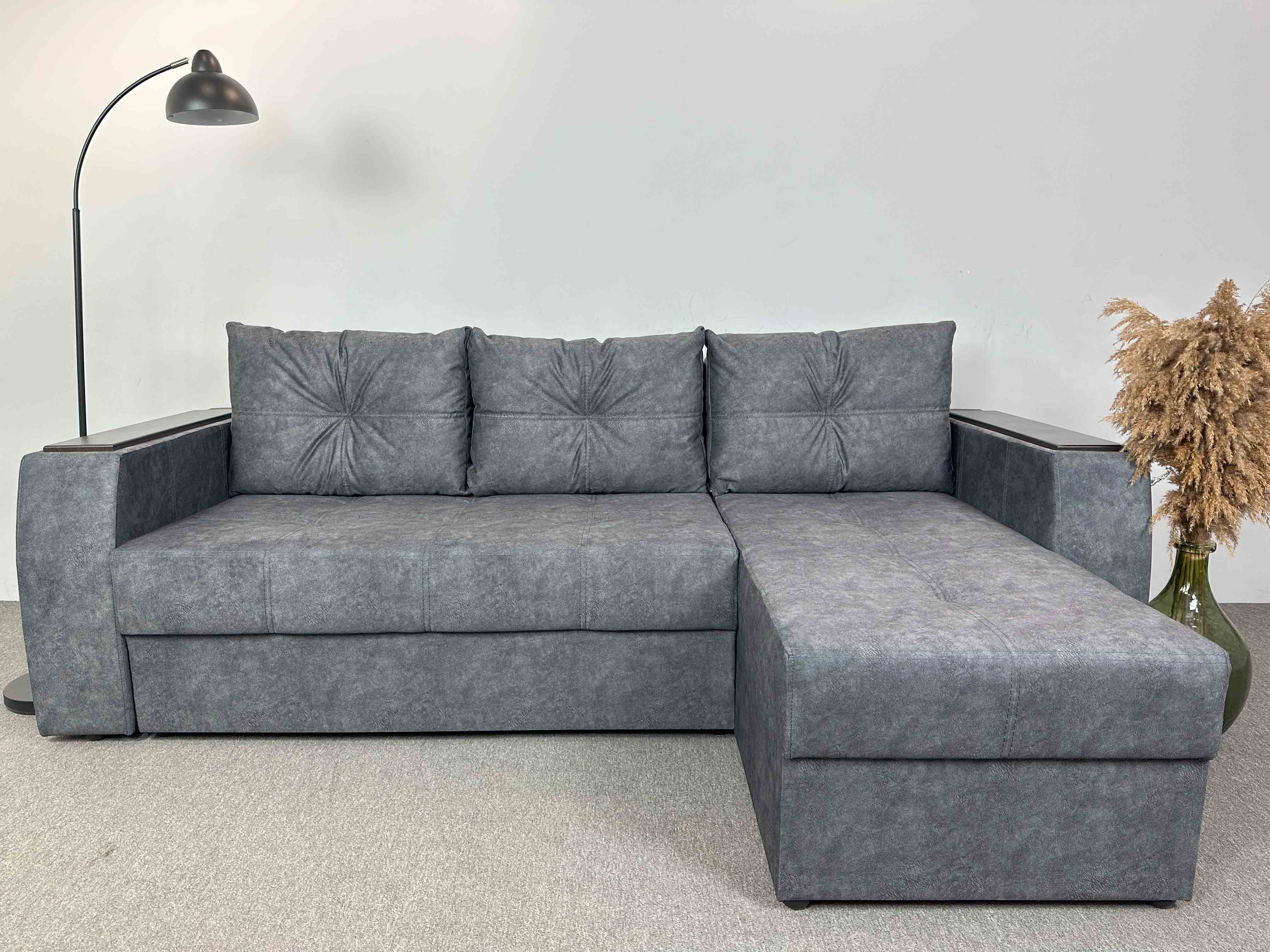 Угловой диван Прадо — это изысканный акцент в вашем интерьере, который сочетает классическую элегантность с современной функциональностью. Его плавные линии, продуманная геометрия и высококачественная обивка создают атмосферу роскоши и уюта. Диван Прадо отличается глубоким и комфортным сиденьем, мягкими спинками и широкими подлокотниками, которые обеспечивают максимальный комфорт для отдыха и общения. Угловая форма позволяет рационально использовать пространство комнаты, создавая идеальную зону для семейных вечеров или приема гостей. Модель оснащена удобным механизмом трансформации, который легко превращает диван в просторное спальное место, а вместительный ящик для хранения добавляет практичности. Прадо — это гармония стиля, комфорта и функциональности, что делает его отличным выбором для современного дома.