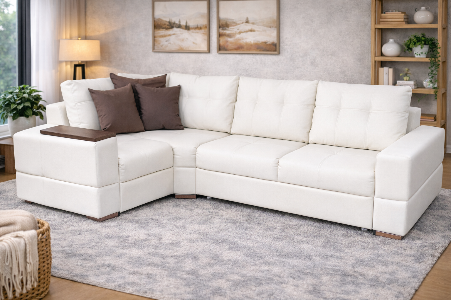 Угловой диван Шериданс — это пространство, где комфорт обретает форму. Продуманная угловая конструкция легко вписывается в интерьер и рационально использует каждый метр комнаты. Мягкие сиденья, удобная глубина и поддерживающая спинка создают ощущение настоящего отдыха — для вечеров в кругу близких или спокойных моментов наедине. «Шериданс» сочетает современный характер и домашний уют, становясь центром гостиной, к которому хочется возвращаться снова и снова.