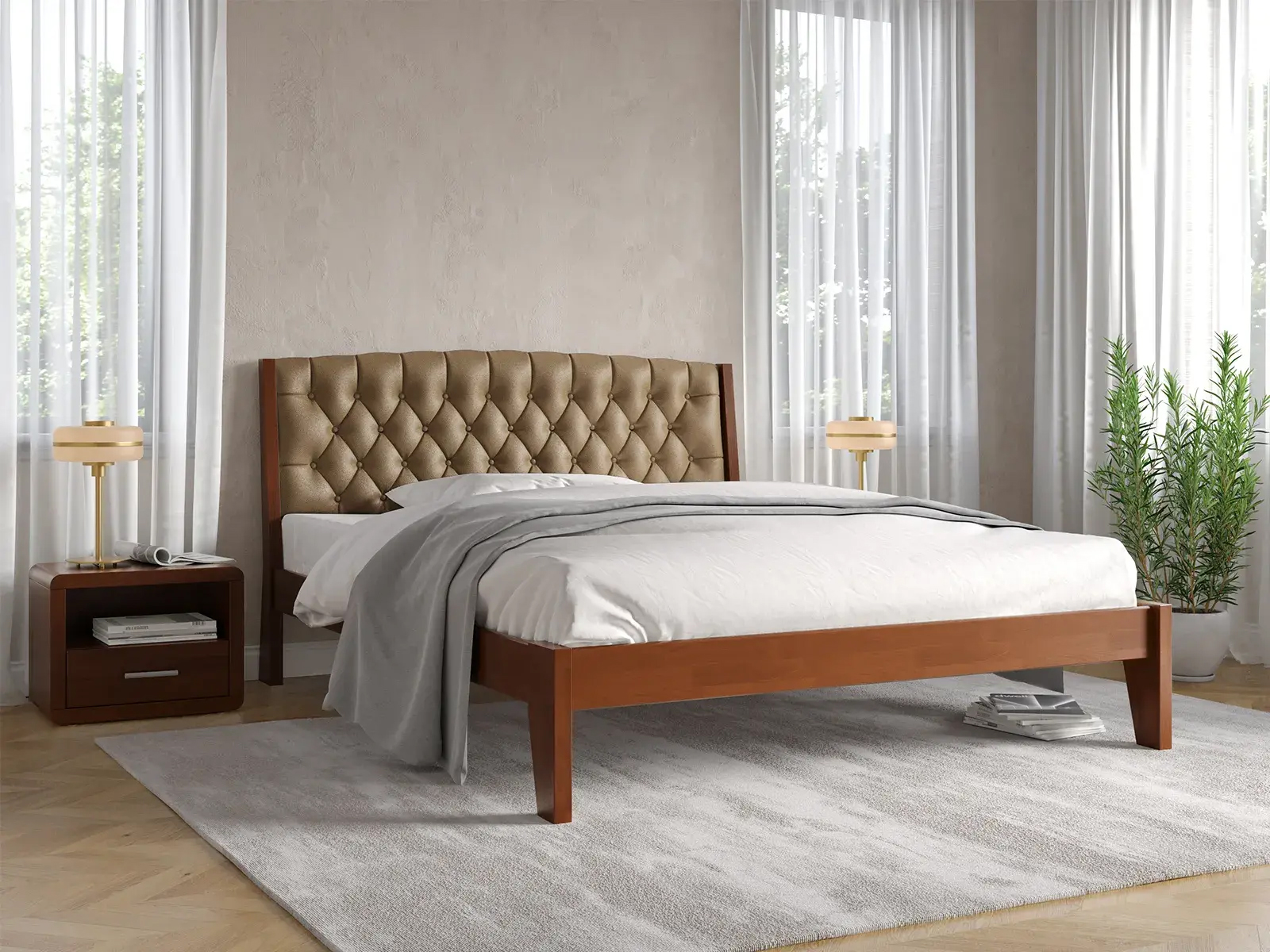- Вы останетесь довольны современным дизайном, который гармонично сочетается с различными стилями интерьера и придает спальне уют и изысканность.