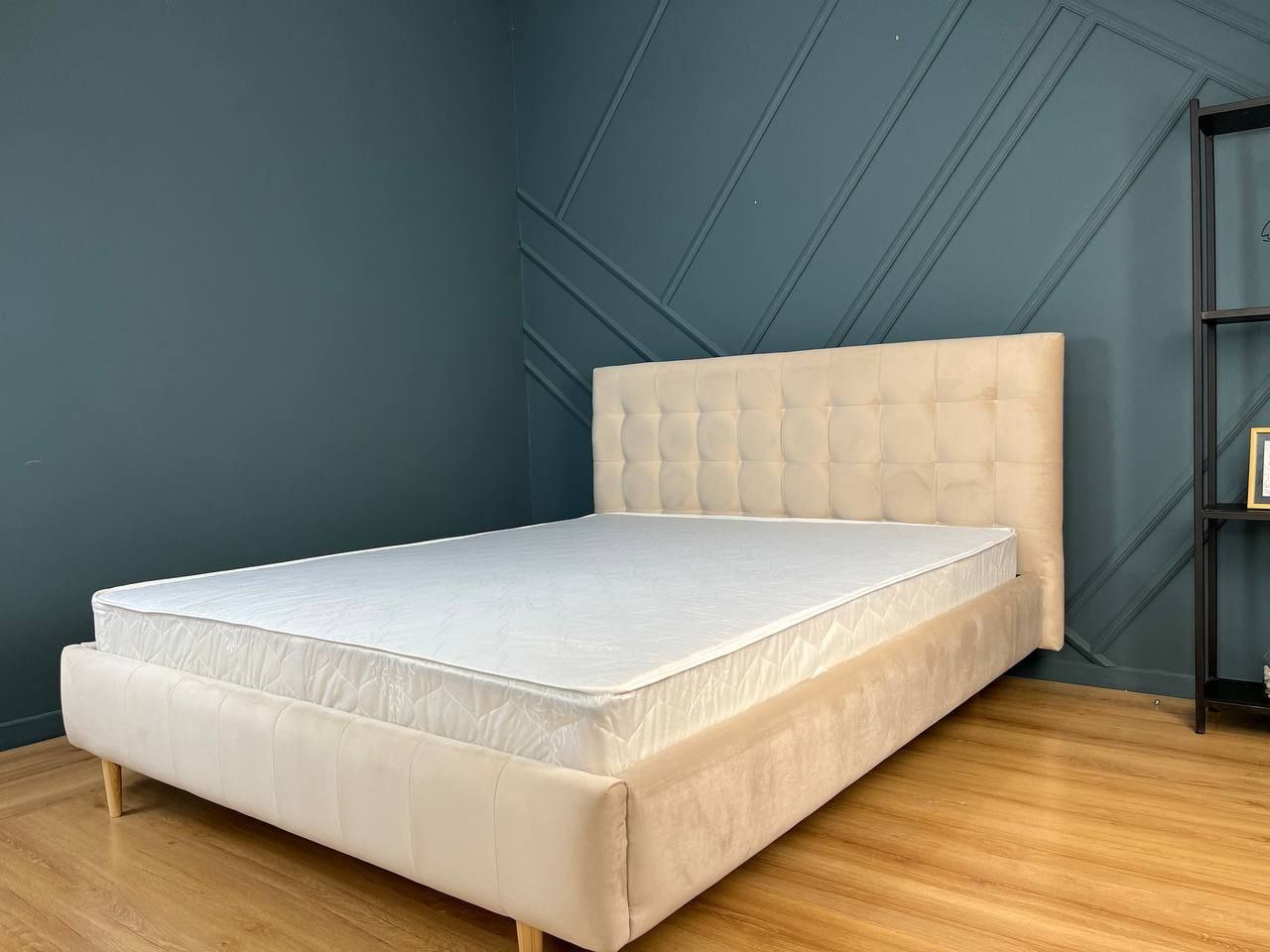 - Вы получаете кровать с хромированным металлическим каркасом — крепкую, устойчивую и одновременно визуально легкую.