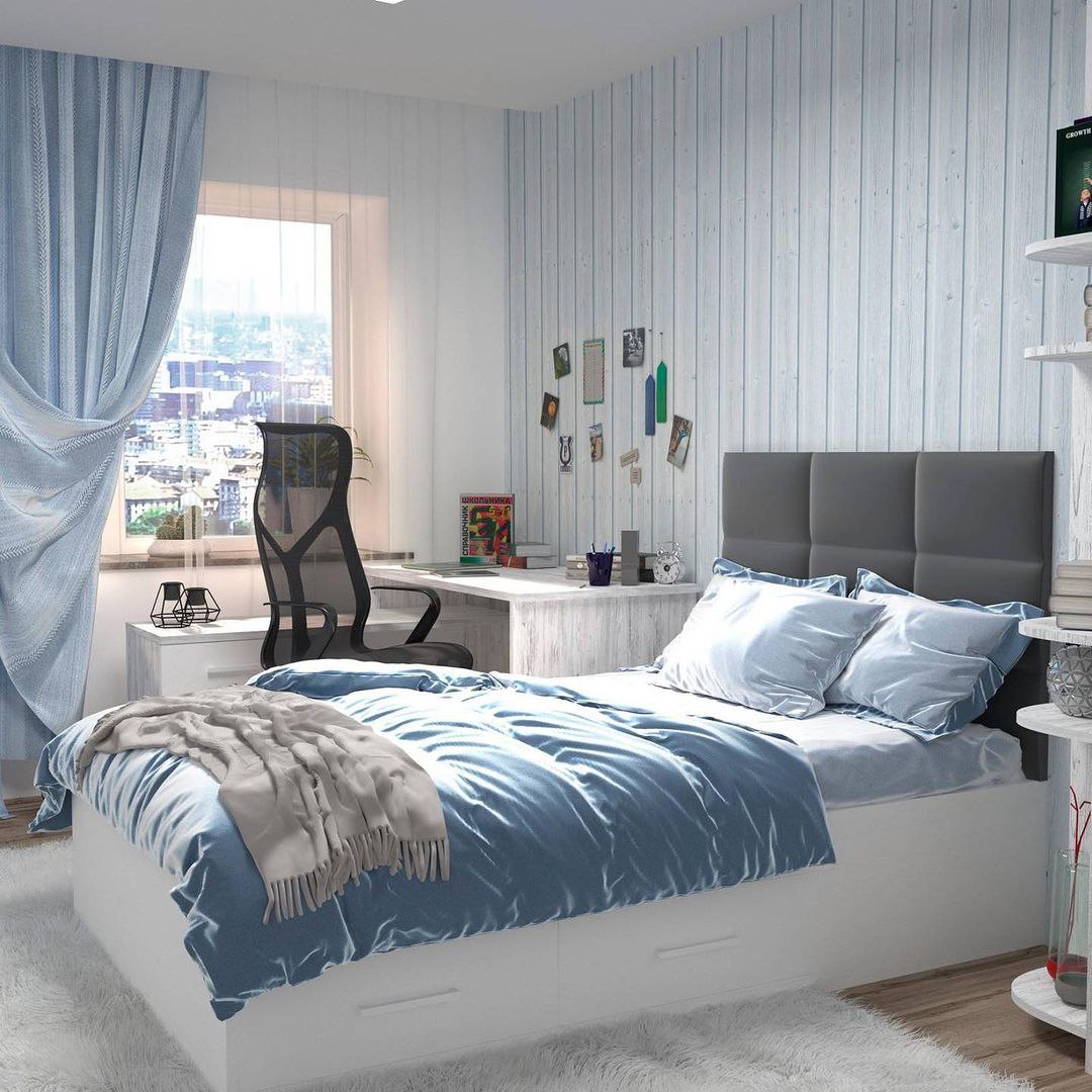 Эта стильная кровать предназначена для детей и подростков. Вы можете выбрать цвет ткани для спинки из нашего каталога, чтобы кровать гармонично вписалась в интерьер детской комнаты. Ящики расположены так, чтобы они не мешали друг другу и рядом с кроватью можно было поставить тумбочку.