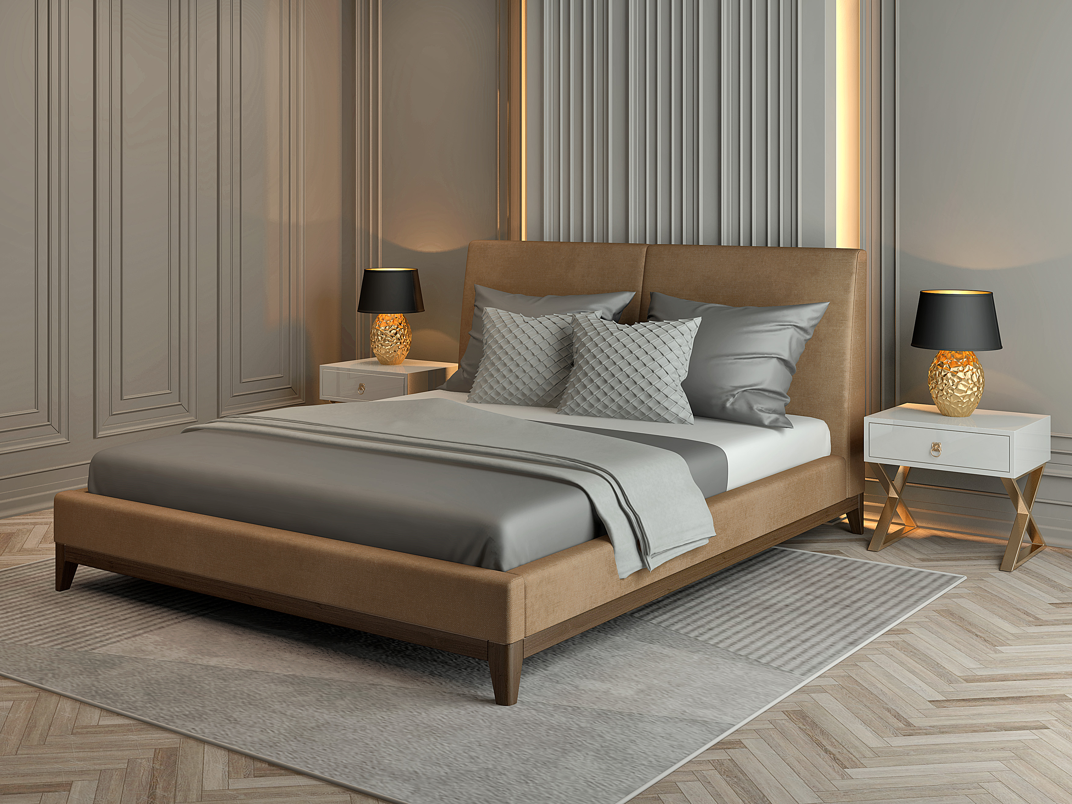 Кровать Кальяри доступна в различных цветах и вариациях обивки, что позволяет максимально адаптировать ее к стилю вашей спальни – от сдержанных минималистичных до ярких акцентных интерьеров.