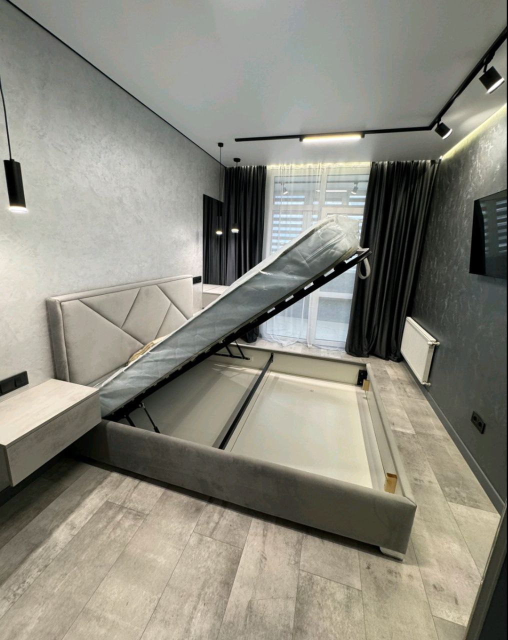 Вы получаете возможность поднять матрас вместе с пространством под ним и использовать его для хранения вещей.