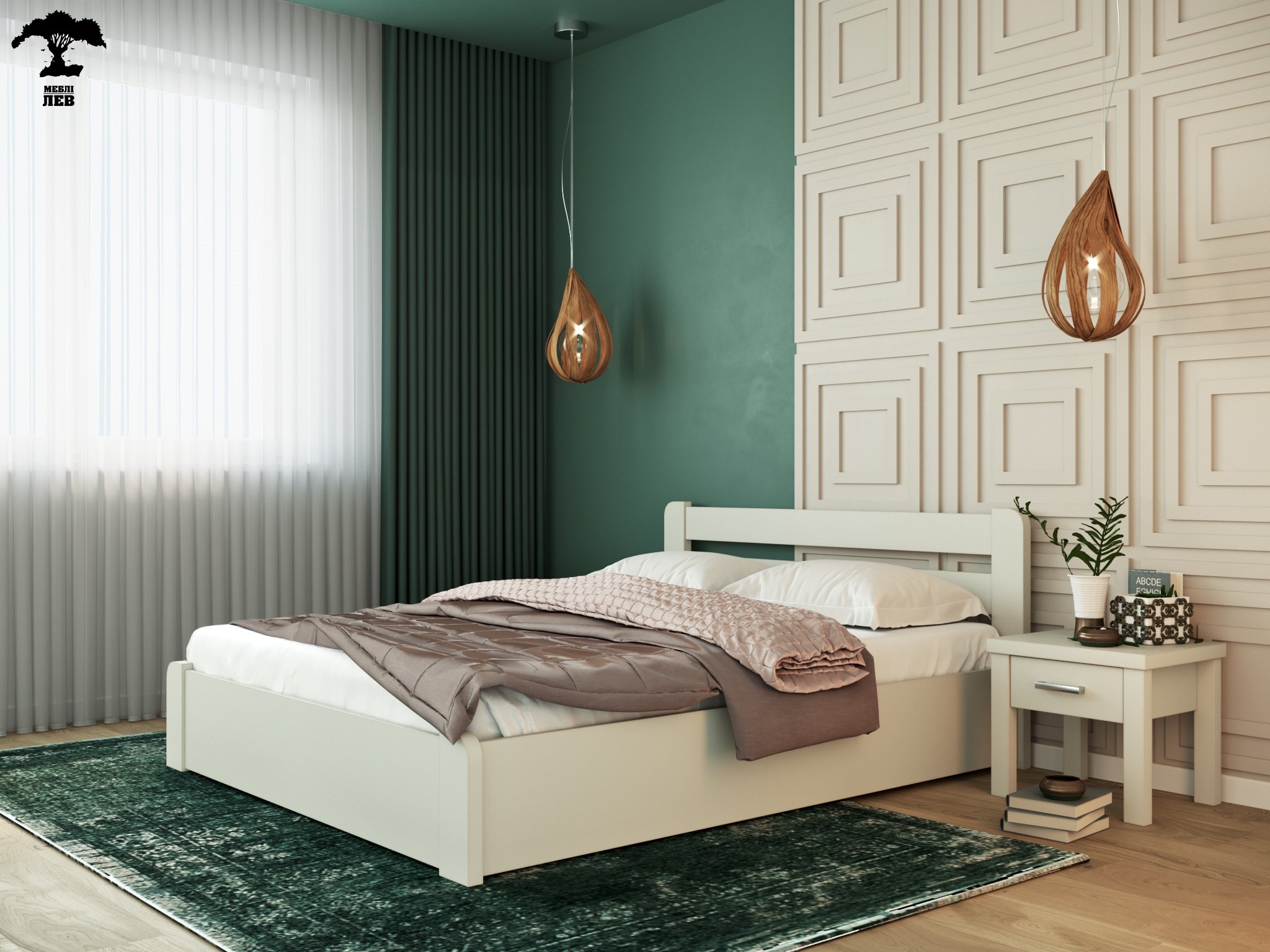 Кровать деревянная Лев Лира с подьемным механизмом и нишей для белья массив Бук Белый