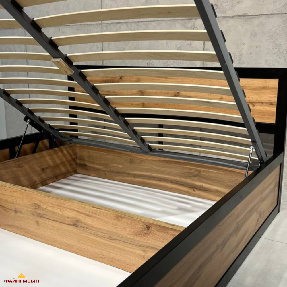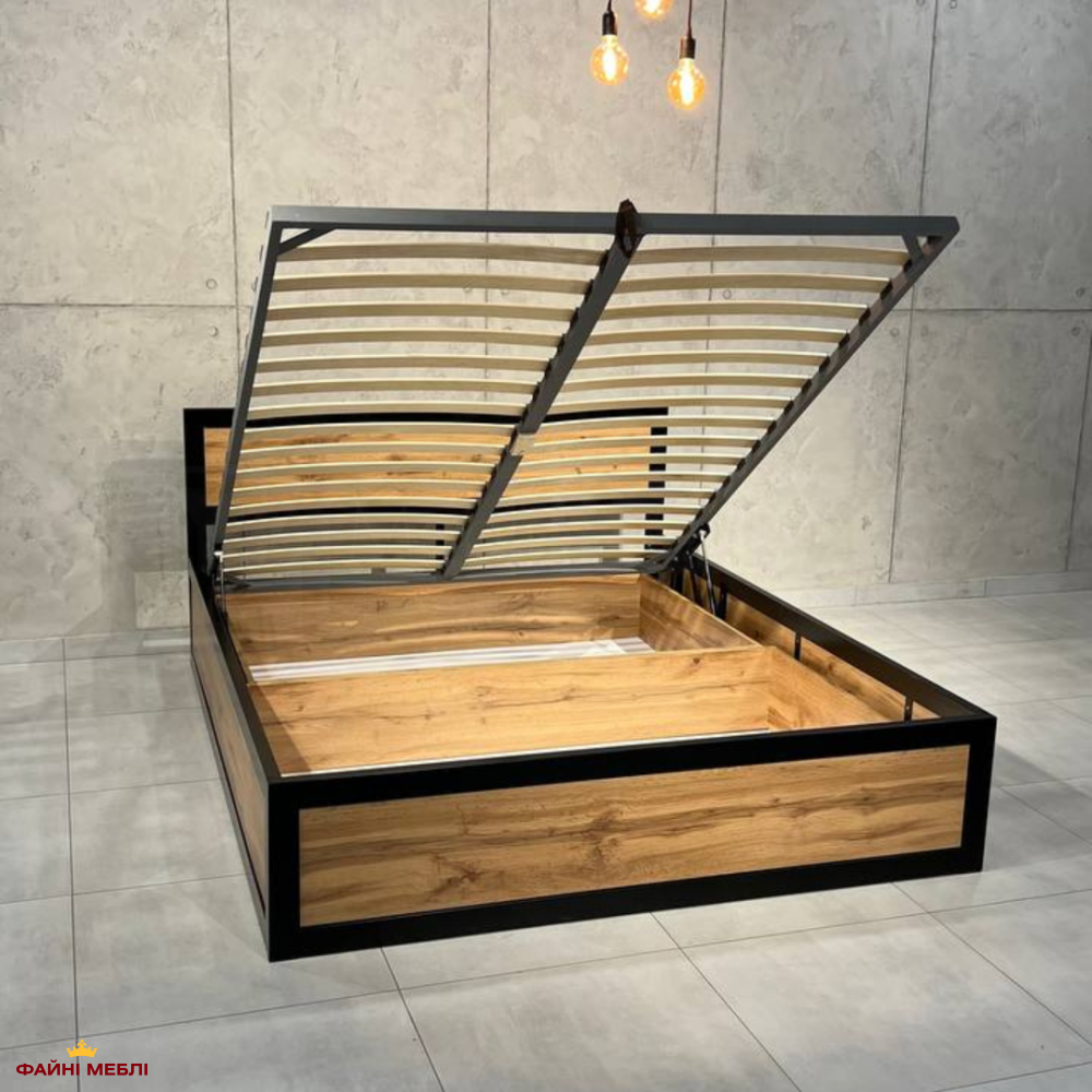Кровать LOFT с подъёмным механизмом Дуб Сонома / Чёрный мат MebliRoMax