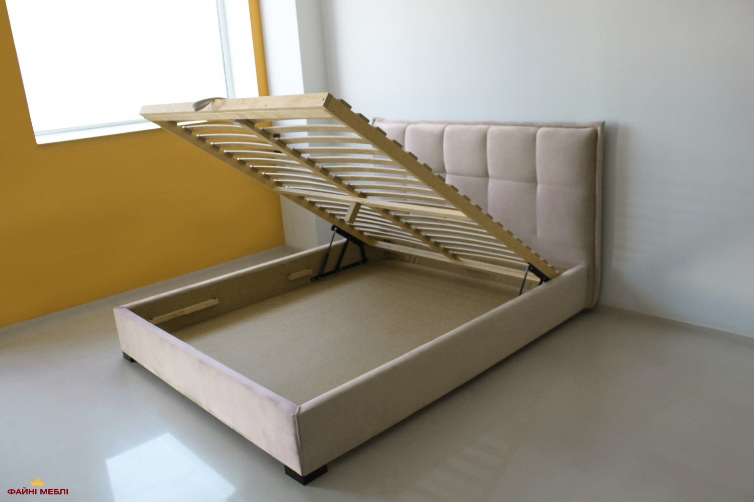 - Подъемный механизм. По желанию кровать может быть укомплектована газлифтом (от 750 до 1500N) для удобного подъема основания и доступа к нише для хранения.