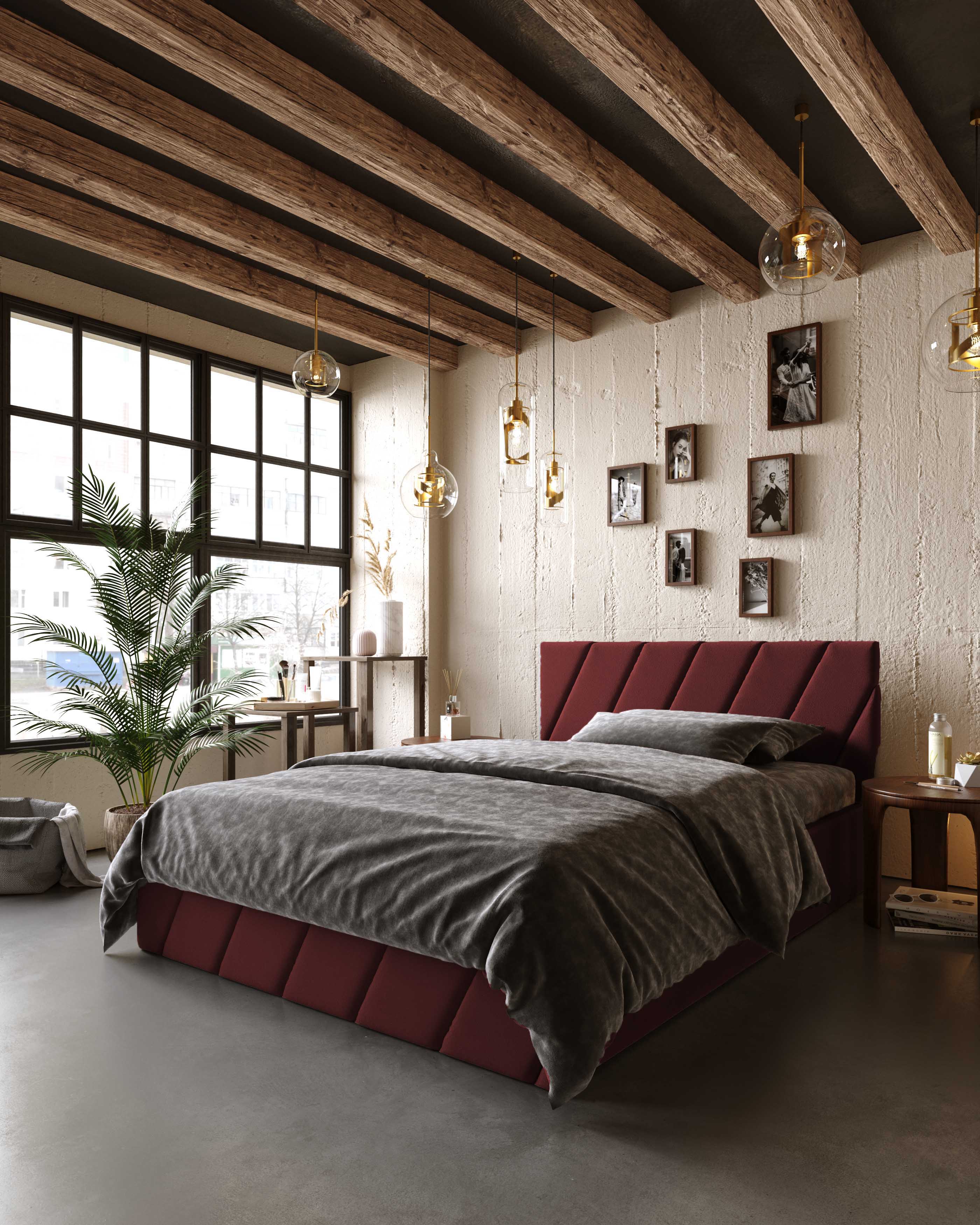 - Изящный современный дизайн. Высокое мягкое изголовье (110 см), обтекаемые формы и обивка велюром из коллекции Lounge создают визуальное тепло и уют, гармонично сочетаясь с разными интерьерными стилями — от минимализма до современной классики.