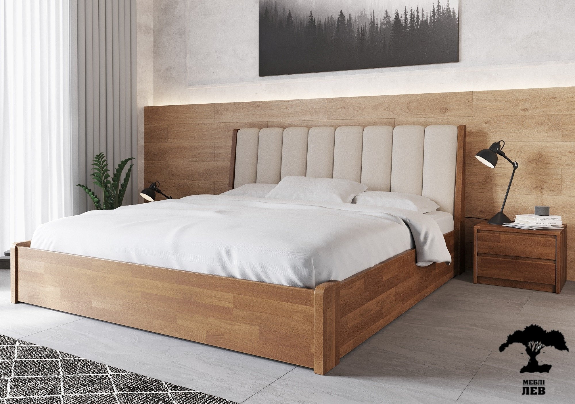 Кровать деревянная Лев Токио 50 с подьемным механизмом и нишей для белья массив Бук