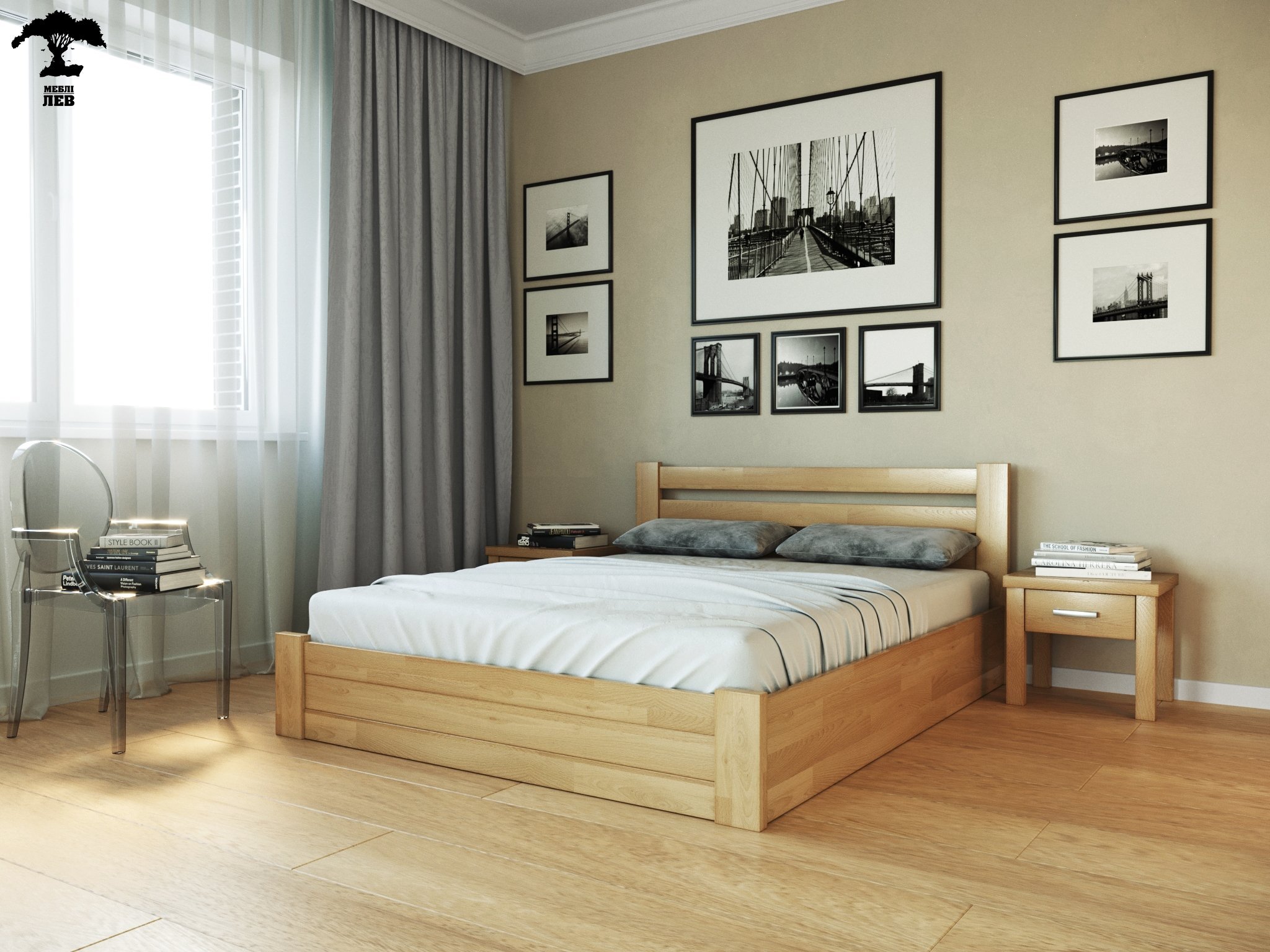 Кровать деревянная Лев Жасмин с подьемным механизмом и нишей для белья массив Бук