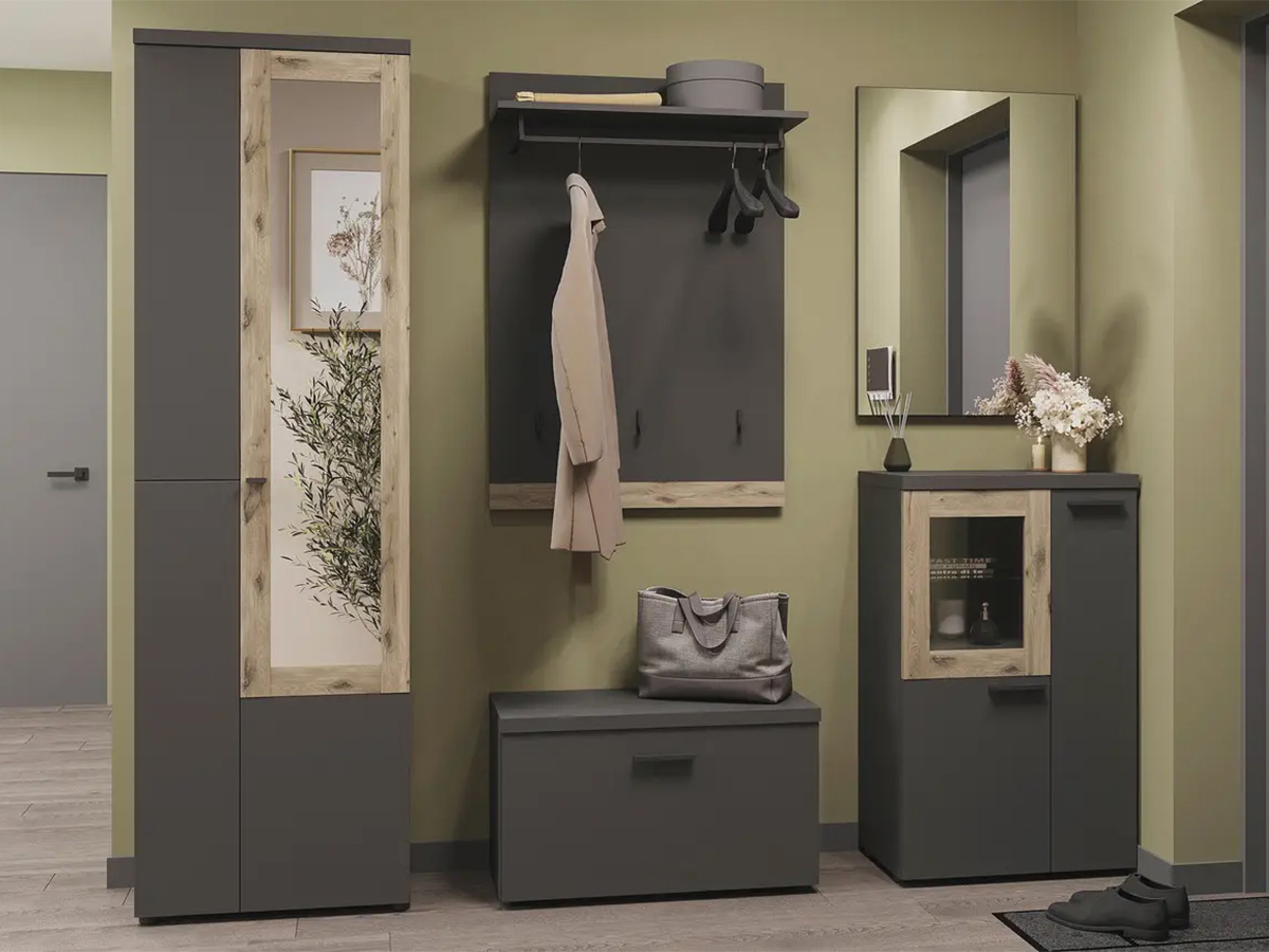 Контраст антрацитового оттенка с тёплой древесной фактурой Дуб викинг создаёт глубокий, сбалансированный образ. Такая комбинация выглядит стильно и одновременно добавляет прихожей уюта. - Повышенная прочность конструкций