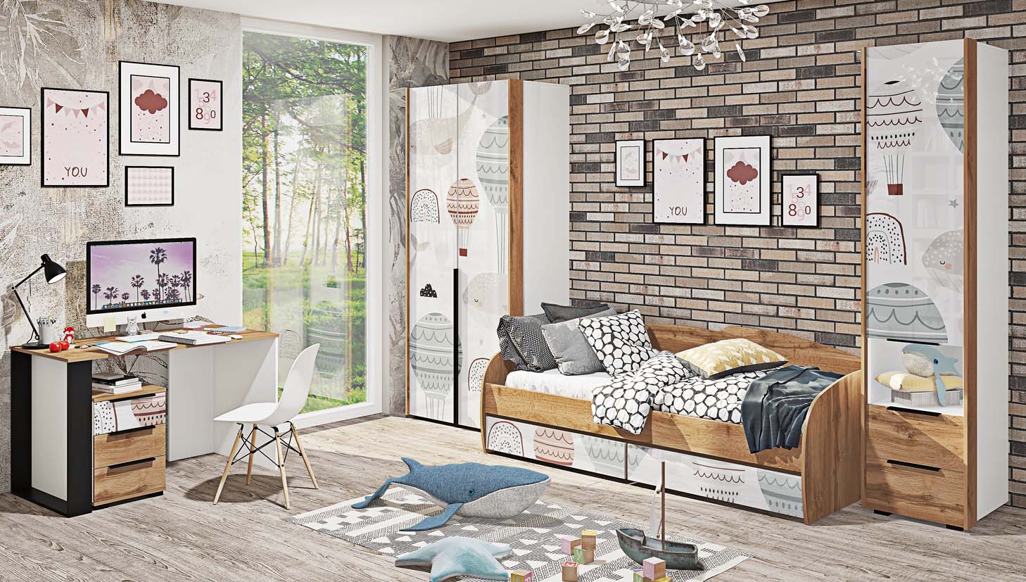 Включает шкаф, пенал, кровать, письменный стол и тумбу для полноценного обустройства комнаты. - Качественные материалы