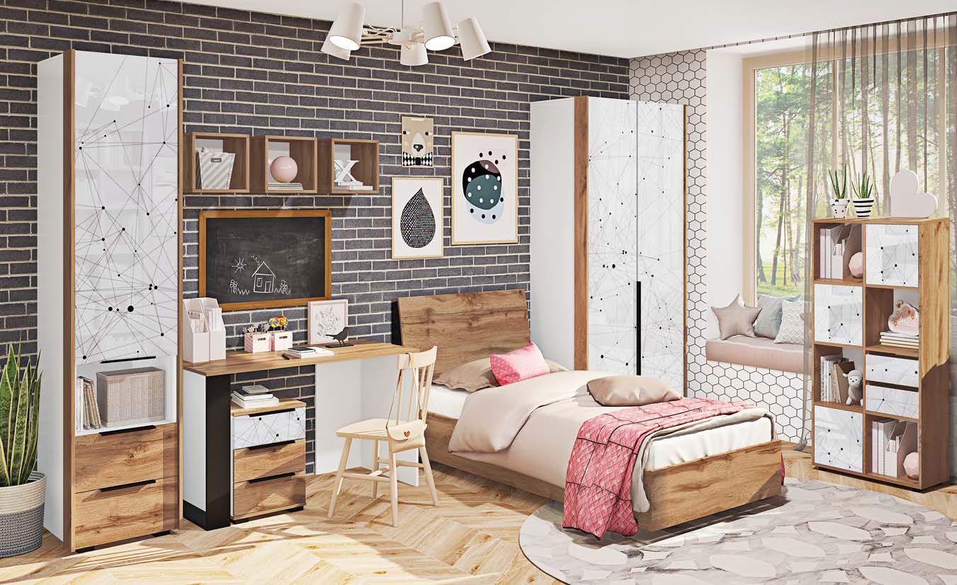 Включает шкаф, кровать, письменный стол и тумбу для организации сна, учёбы и хранения вещей. - Качественные материалы
