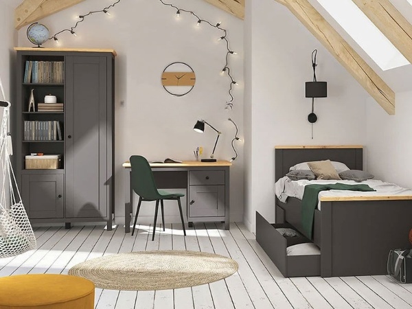 Модульная детская Хессен изготовлена из прочного ЛДСП и оснащена металлическими ручками для удобства и долговечности. Благодаря 38 элементам можно создать полноценное, гибкое пространство для сна, учёбы, хранения вещей, игр и творчества, комбинируя модули под любые потребности и размеры комнаты. Коллекция позволяет обустроить все зоны детской комнаты в едином стиле, сочетая практичность с современным дизайном, и адаптируется вместе с ростом ребёнка.