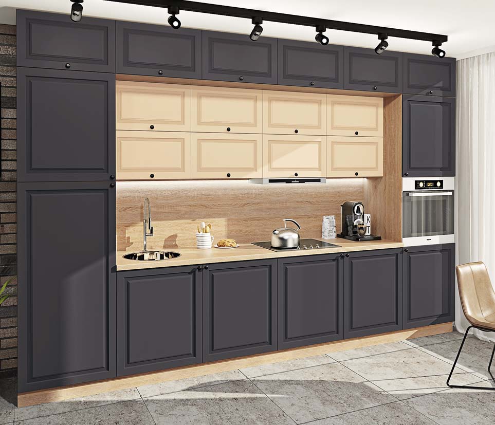 Модульная кухня Атланта — это современное решение для тех, кто ценит комфорт, практичность и стиль. Благодаря модульной системе вы можете подобрать оптимальное сочетание элементов под любое пространство и планировку. Наши менеджеры помогут создать максимально удобную и функциональную конфигурацию с учетом всех ваших потребностей. В каталоге доступны разнообразные модули: кухонные шкафчики и пеналы, тумбы с выдвижными ящиками или распашными фасадами, бутылочницы, мойные тумбы, антресоли, секции для вытяжки и шкафы под встраиваемую технику. Предусмотрена возможность интеграции посудомоечной или стиральной машины, которые легко встраиваются в фасады, сохраняя целостность дизайна и эргономику пространства. Благодаря широкому выбору модулей кухня Атланта позволяет создать индивидуальный комплект, который сочетает функциональность, эстетику и рациональное использование площади. Она станет стильным и современным акцентом вашего дома.