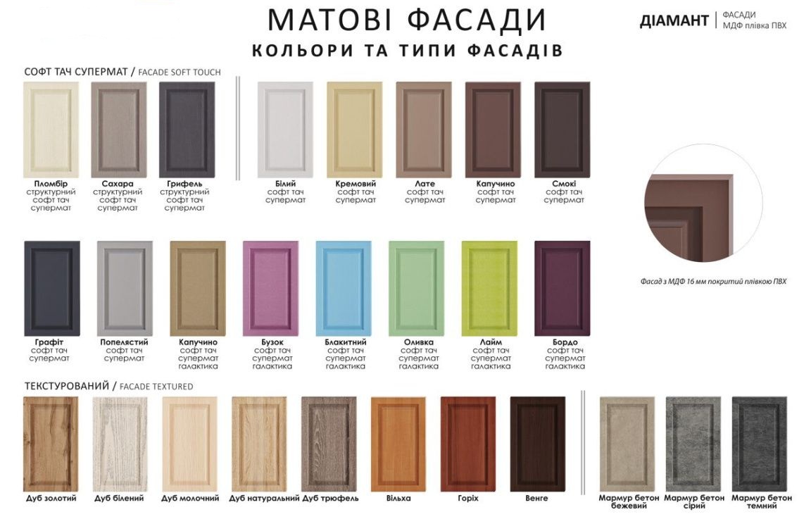 - Фасады выполнены из МДФ, покрытого качественной ПВХ-пленкой.