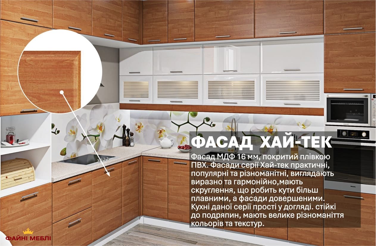 Кухня Хай-Тек сочетает современный дизайн и высокую функциональность, создавая комфортное пространство для повседневного использования. Оптимальные размеры тумб и столешницы позволяют рационально организовать рабочее пространство, обеспечивая удобство в процессе приготовления. Натуральные оттенки дерева добавляют кухне изысканности, а возможность выбрать фасады из большого разнообразия делает ее универсальным решением для любого интерьера. Функциональная и минималистичная, она станет идеальным акцентом вашей кухни.
