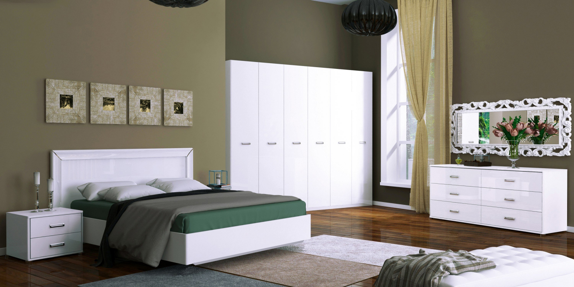 Модульная спальня Белла — модерн, который можно настроить под своё настроение тремя эффектными цветами.