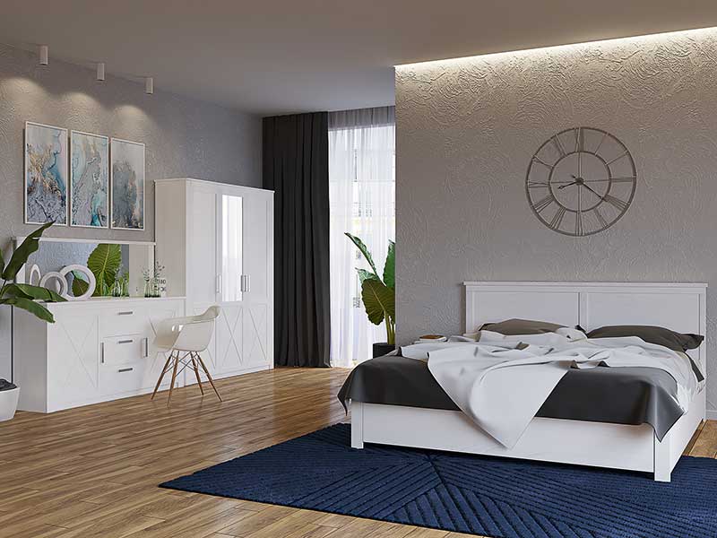 Кровать, шкаф, комод и прикроватная тумба покрывают основные потребности хранения и комфорта. - Плавная и тихая работа ящиков