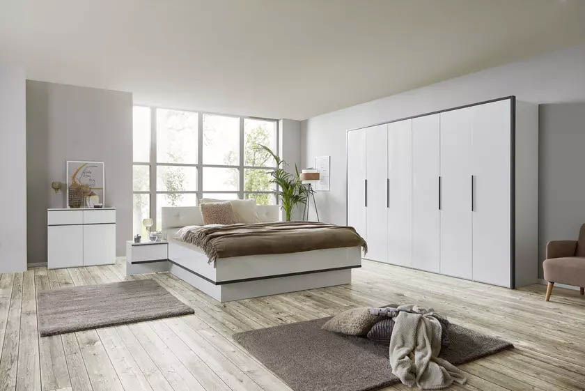 Модульная спальня Лука — чистый белый глянец и характерный антрацит для современного интерьера.